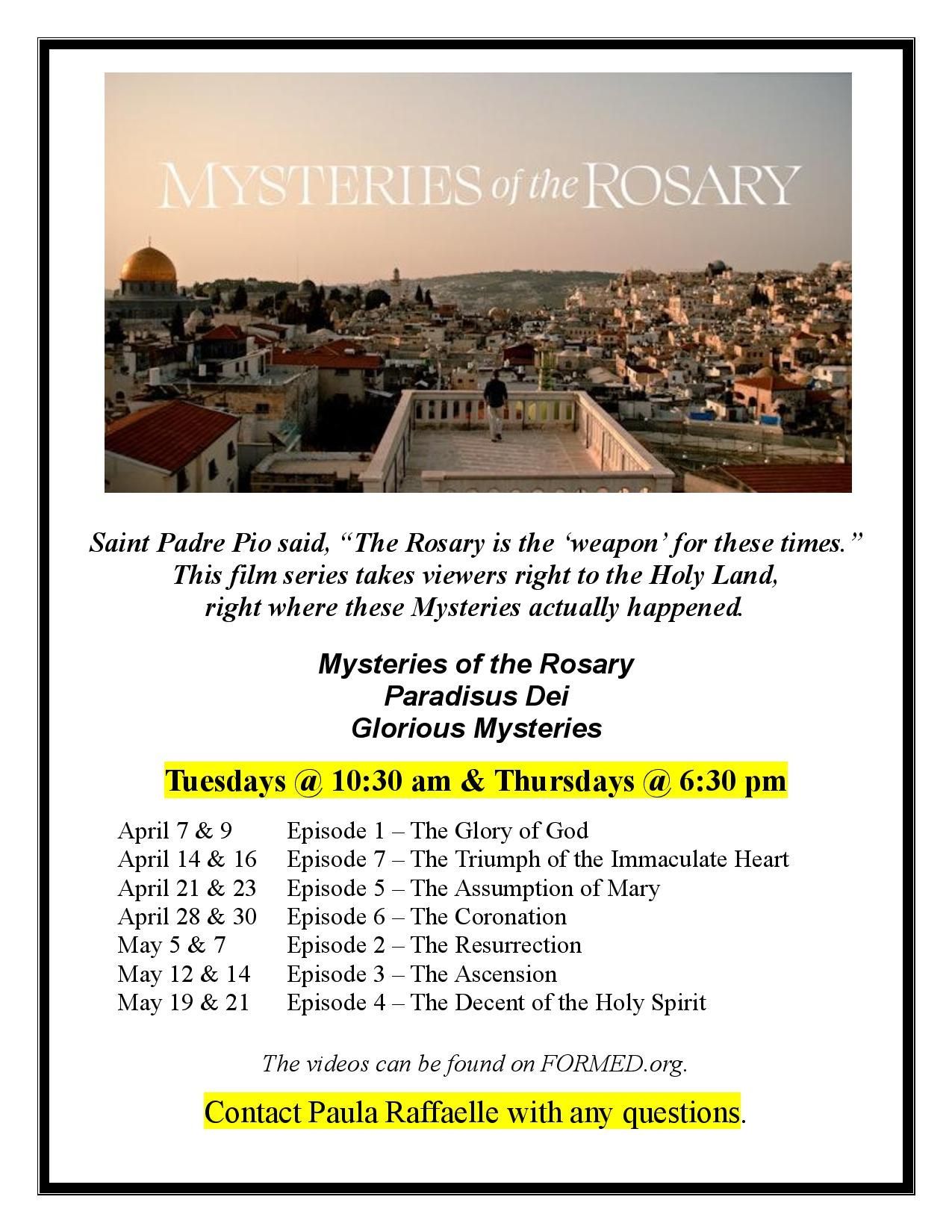 - 10:30 am Rosary